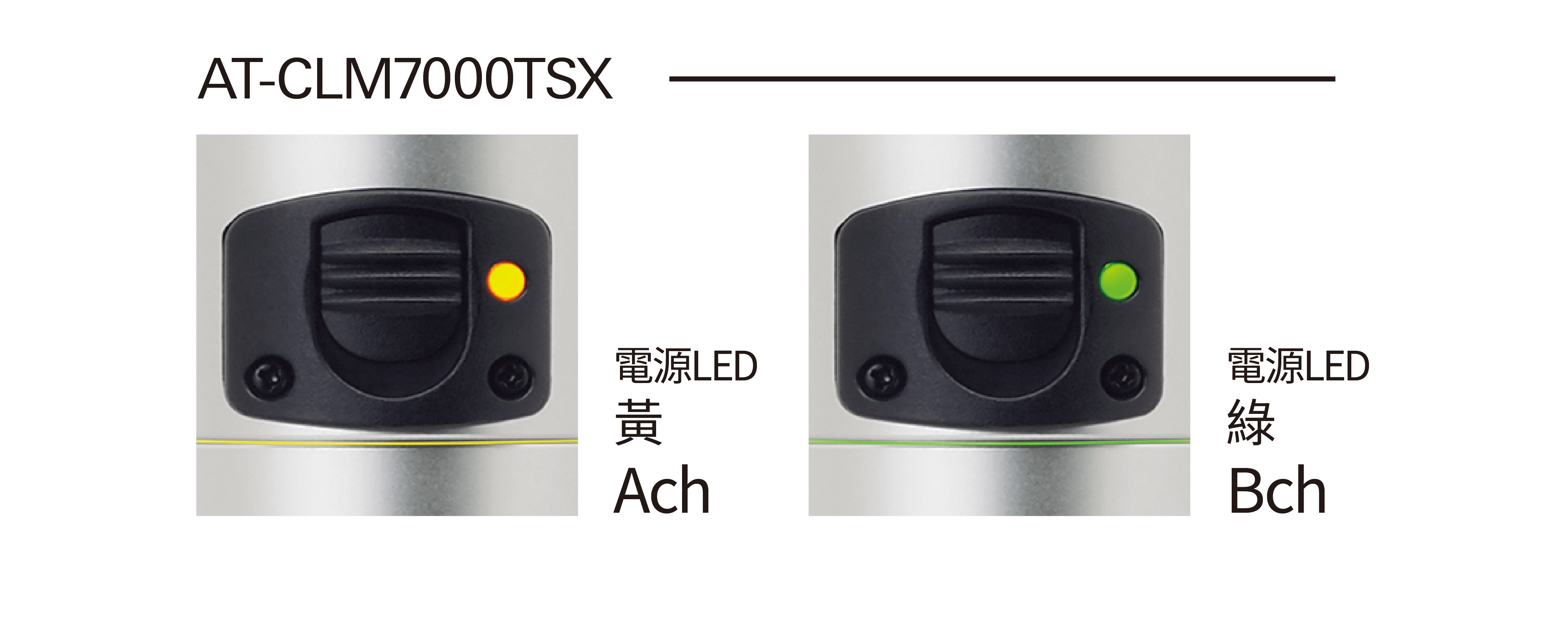 產品支援 A/B 頻道切換功能,可透過機身上的電源指示LED燈顯示目前所使用的頻道。搭配隨附的頻道識別環,在依所設定的頻道安裝後,即使處於電源關閉狀態下,也能一眼辨識頻道設定。