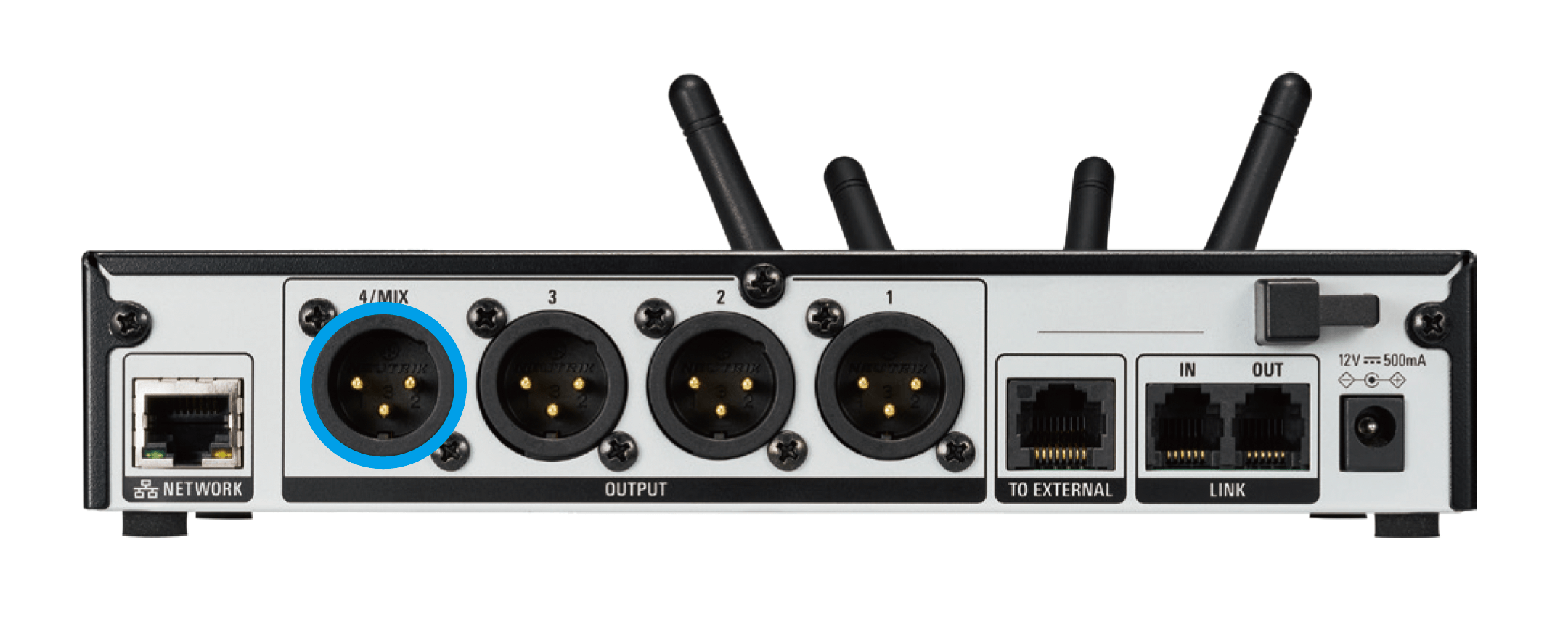 藉由變更設定,能夠混合頻道1~4的麥克風音訊,從AF平衡輸出連接器4/MIX輸出。如果想要減少配線、統一調整音量,或是連接目的地的頻道數量有限,此功能即可派上用場。