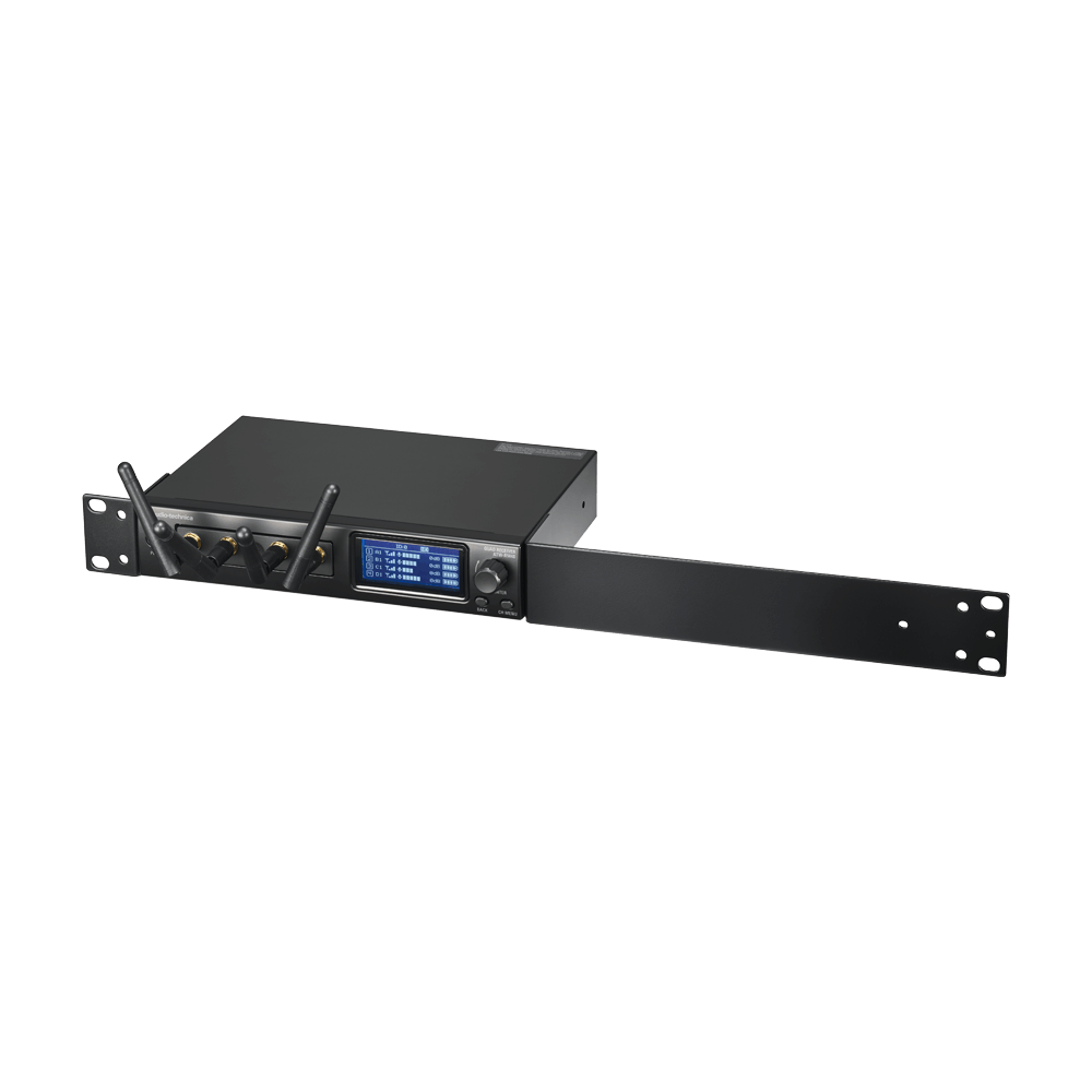 使用隨附的機櫃安裝轉接器,能夠將接收器安裝到符合EIA標準的機櫃上。
