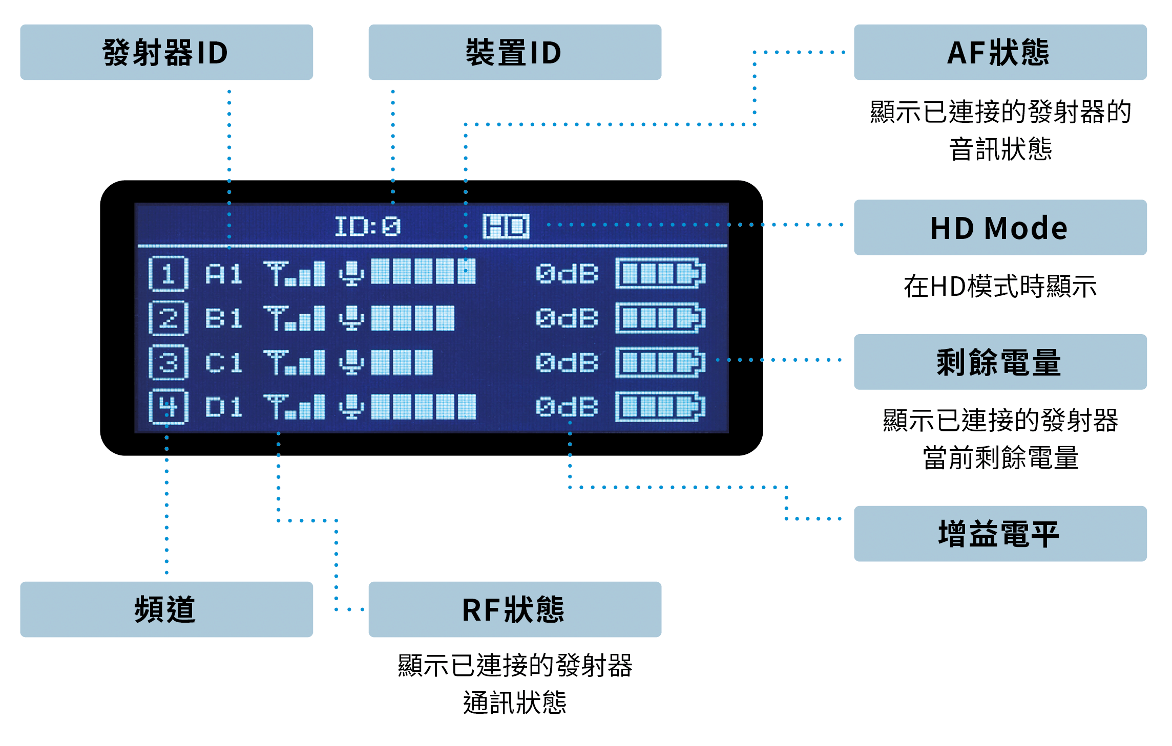 Standard:10個頻道;HD mode:20個頻道(因地區與環境而異)