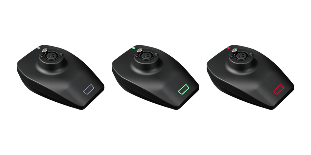 - 搭配鵝頸麥克風使用,桌上型發射器