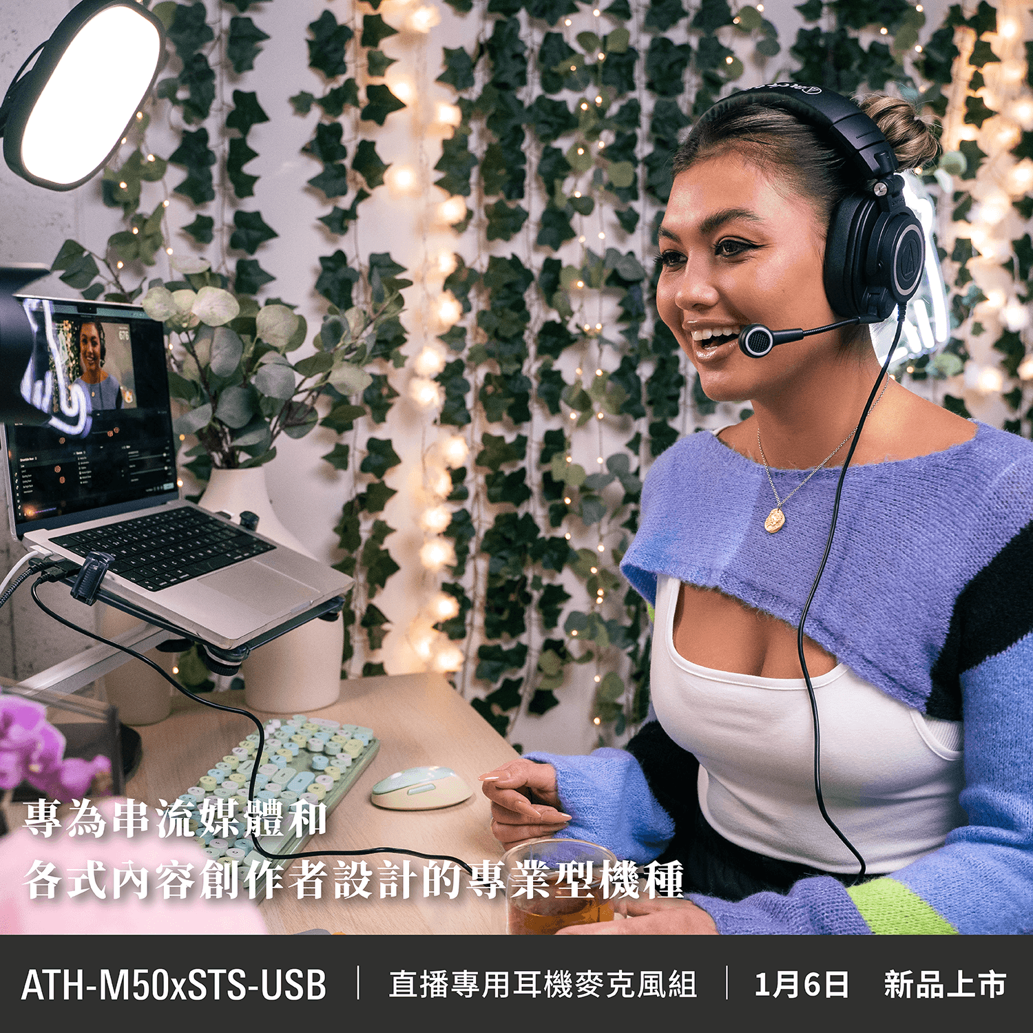 ▲ATH-M50xSTS-USB 直播專用耳機麥克風組