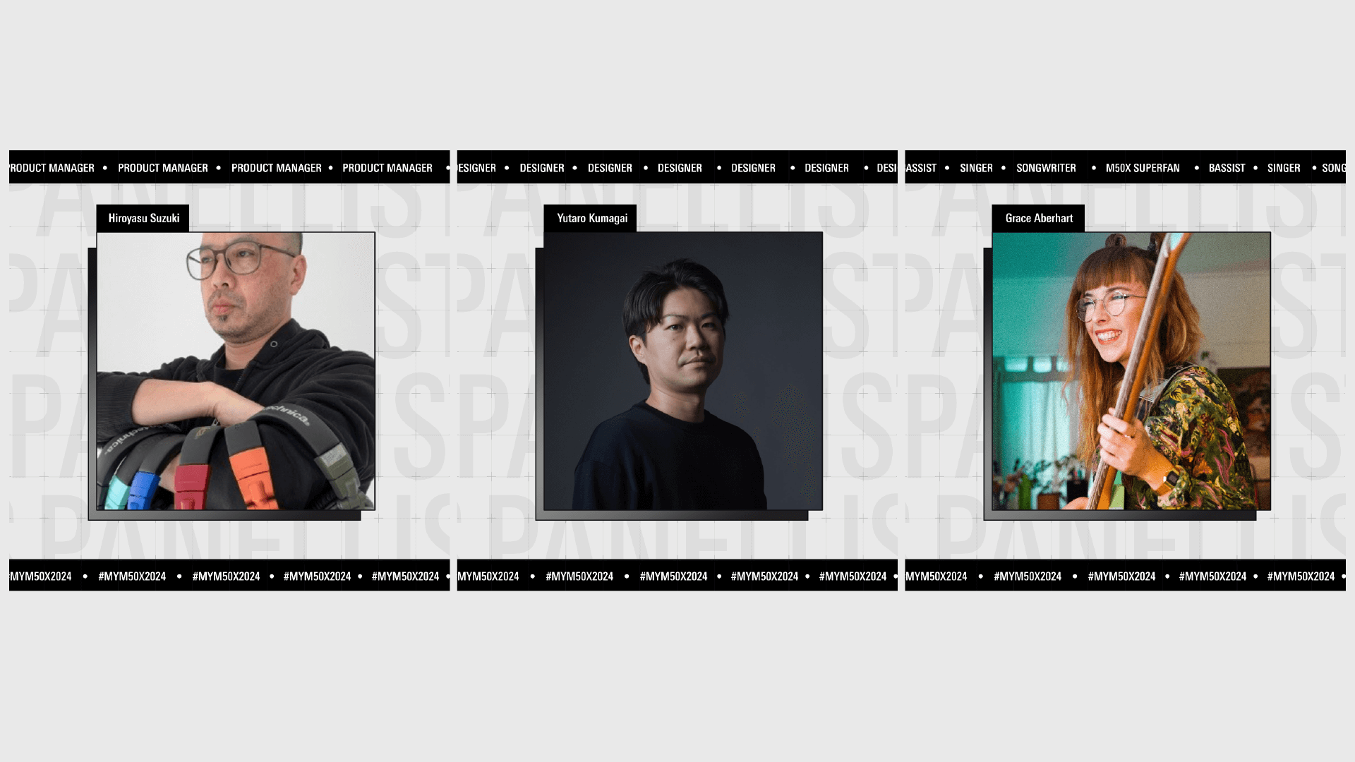 圖2:全球粉絲所投稿的2024年限量款ATH-M50x作品,將透過評審由左至右分別為ATH-M50x專案經理鈴木弘益(Hiroyasu Suzuki)、YONENOI DESIGN首席設計師熊谷有太郎(Yutaro Kumagai)以及M50x重度愛用者的貝斯手Grace Aberhart進行嚴格審查。