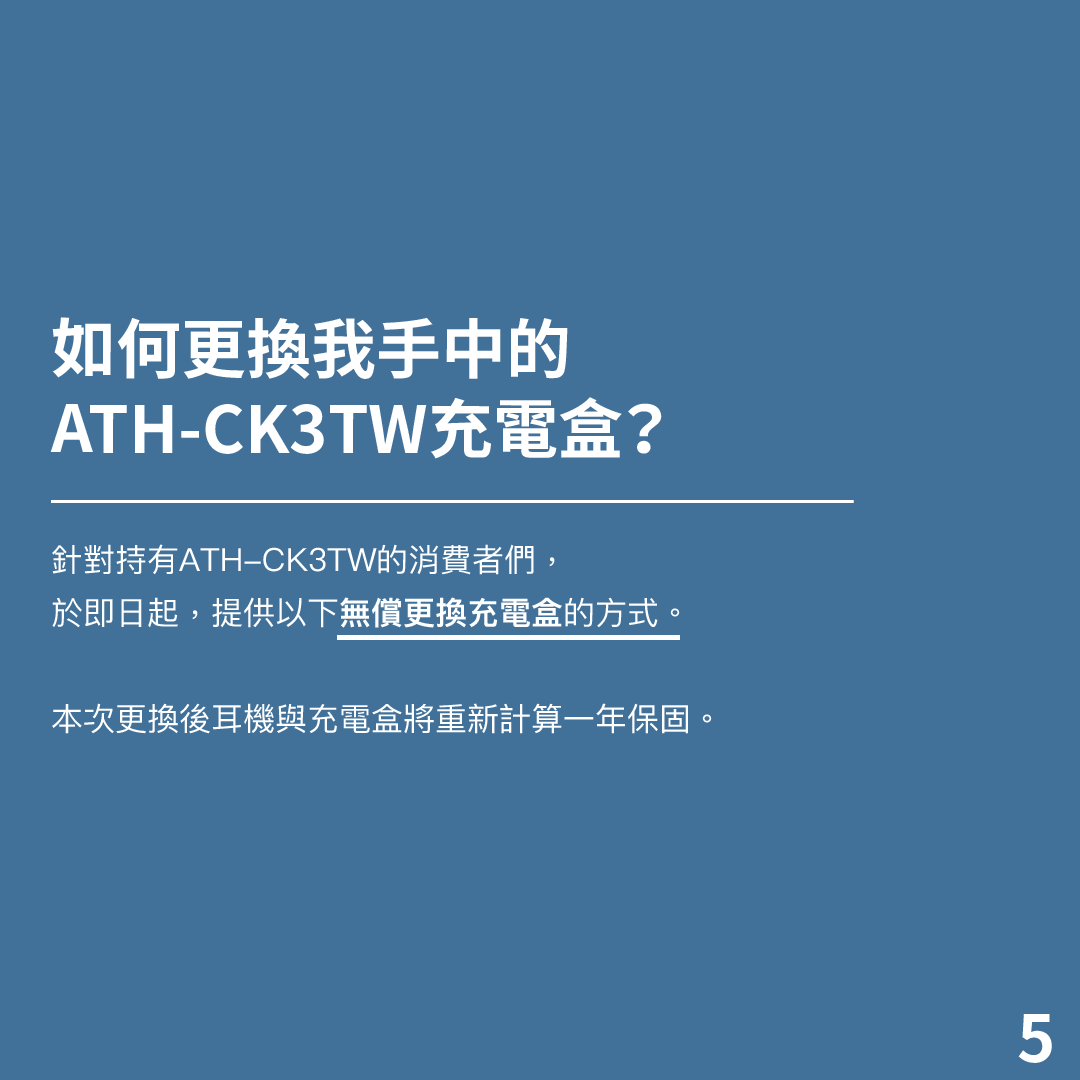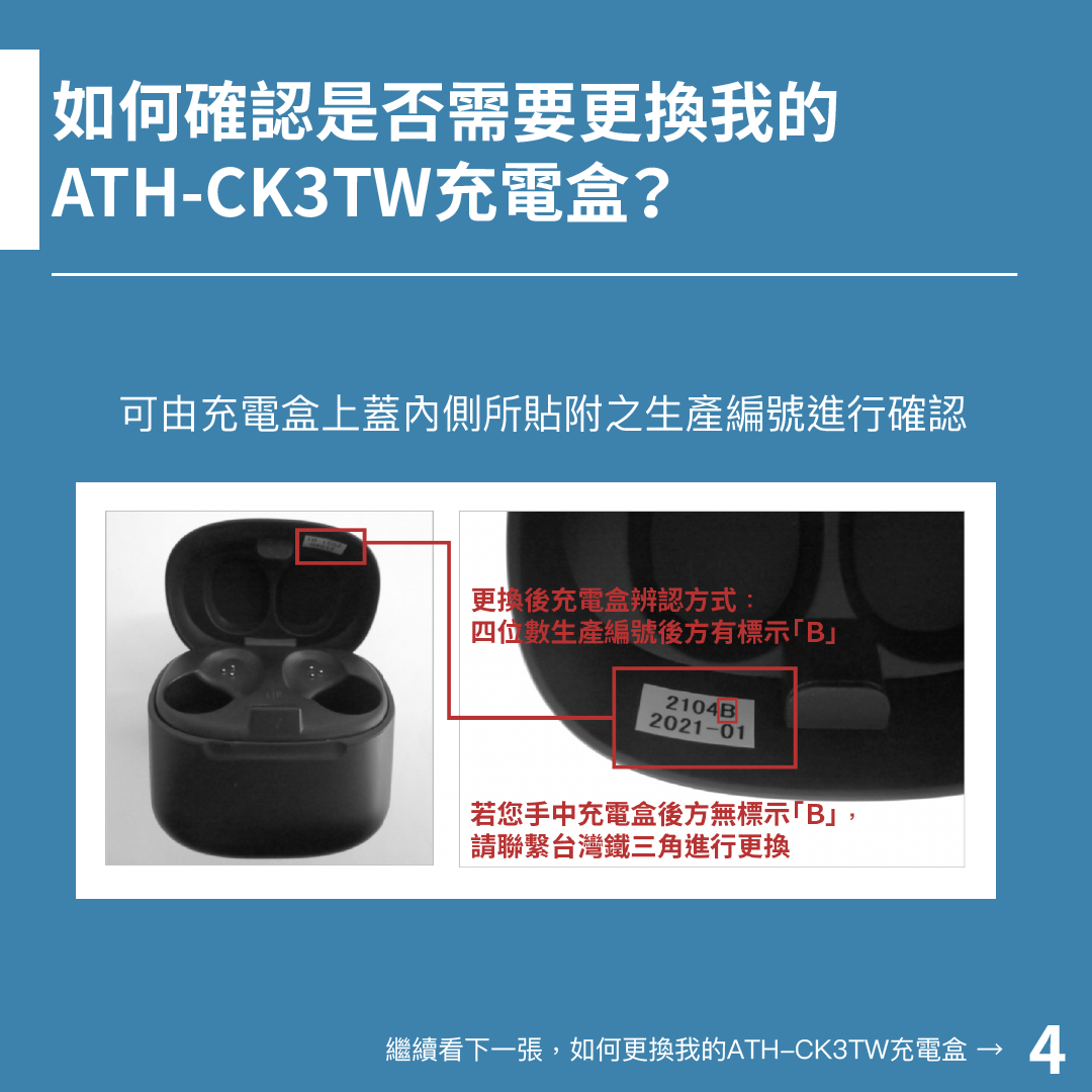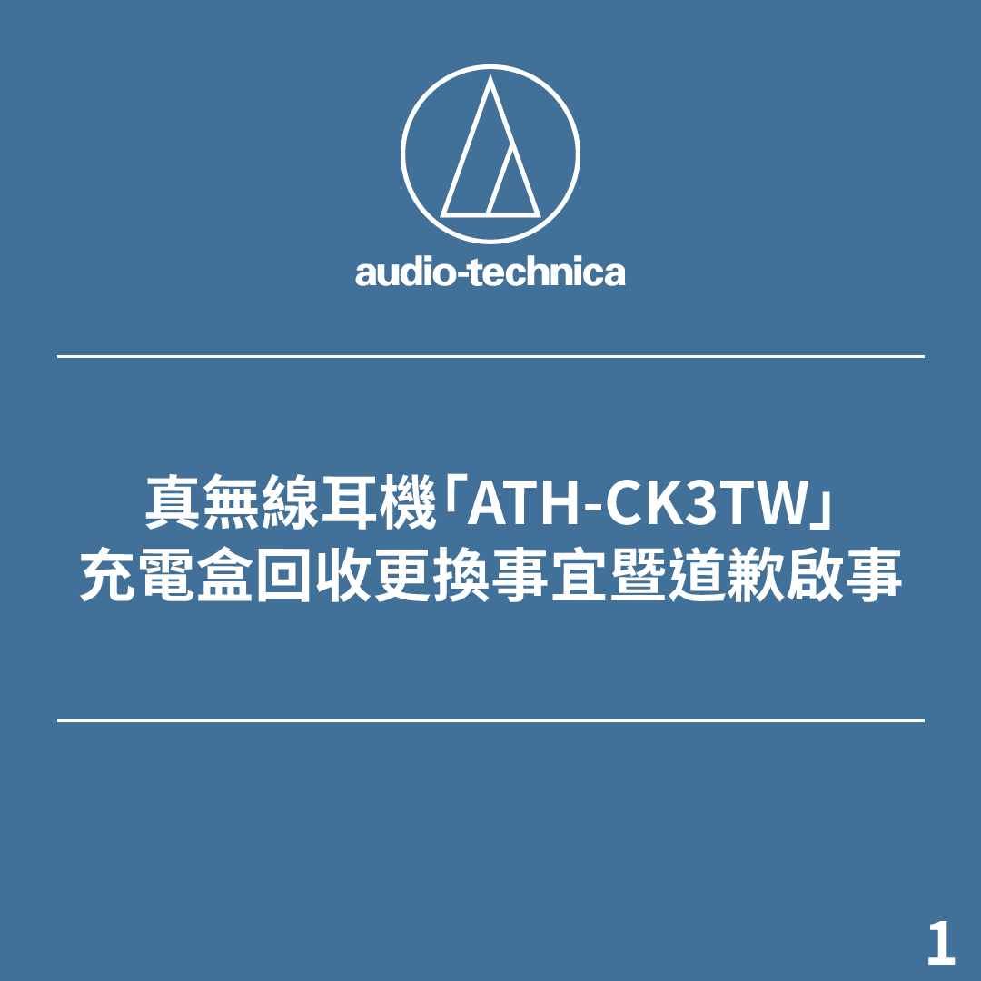 真無線耳機「ATH-CK3TW」充電盒回收更換事宜暨道歉啟事