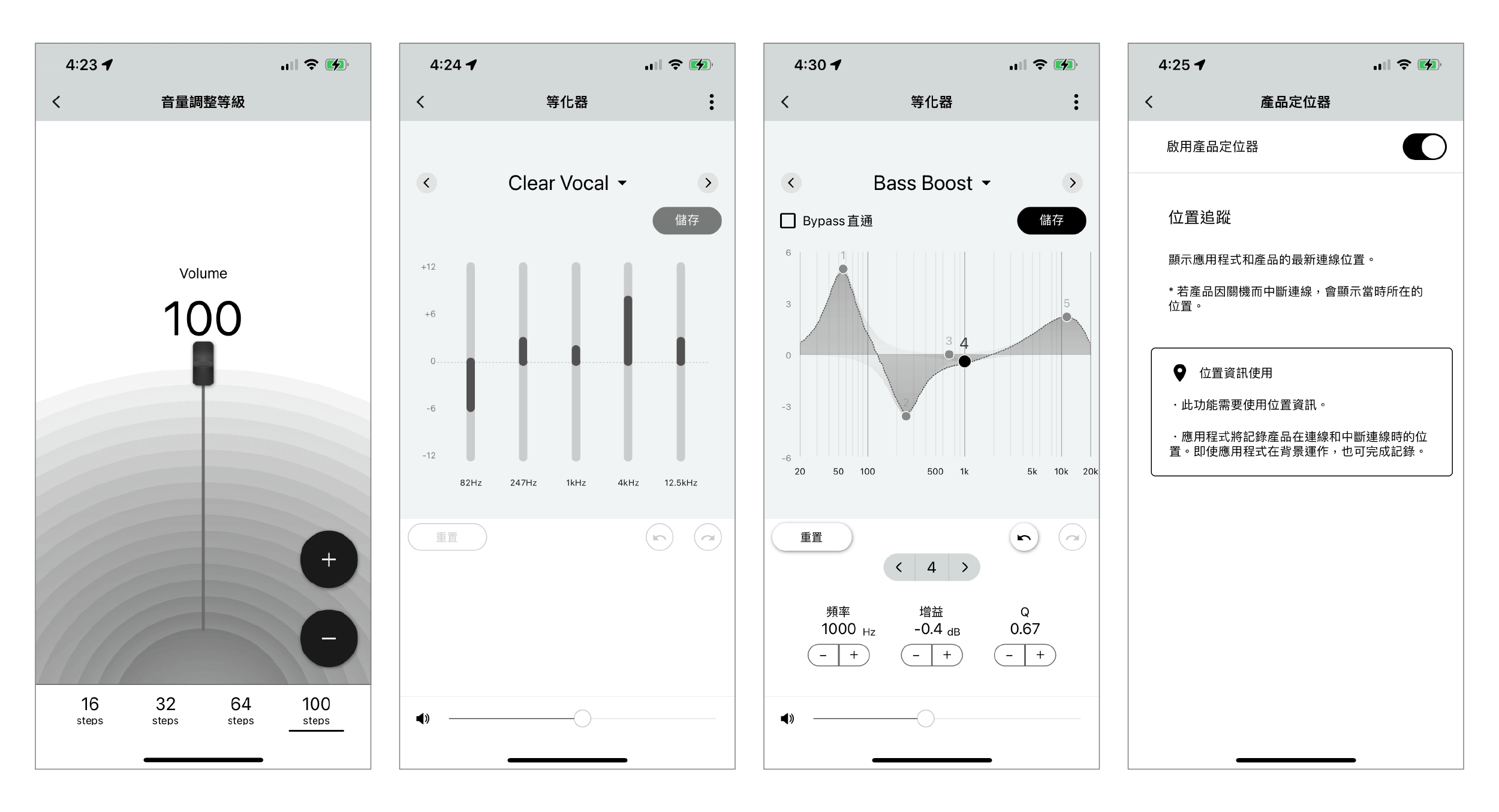 支援音量調整、EQ等化器、低延遲模式、低延遲模式