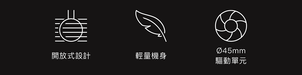 密封式和半開放型的耳機是利用機殼的共振以增強低頻,從而產生聲音。而真正的開放式音色不使用機殼增強低頻,而是讓驅動單元產生的原有聲音直接傳送到耳朵,不會產生共振。 獨家的驅動單元設計可在開放式外殼的前後方進行由驅動單元所產生的氣流進行控制,進而產生純淨且真實的音場。