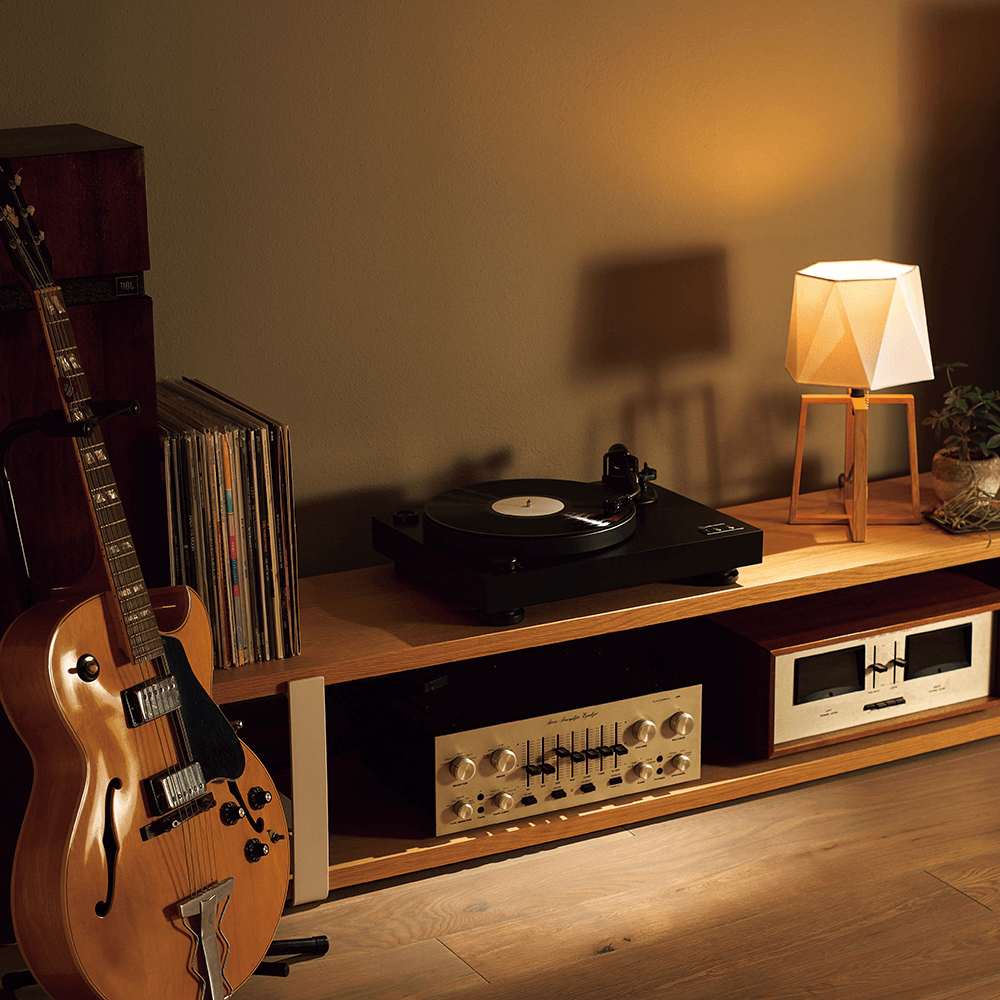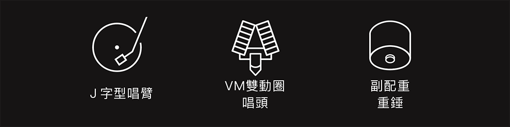 - 搭載可調整垂直高度(VTA)的鐵三角傳統J字型唱臂