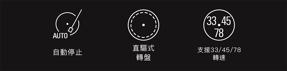 ▌可對應 33-1/3、45、78 轉速唱片,會根據不同轉速自動調整自動停止的時機。
