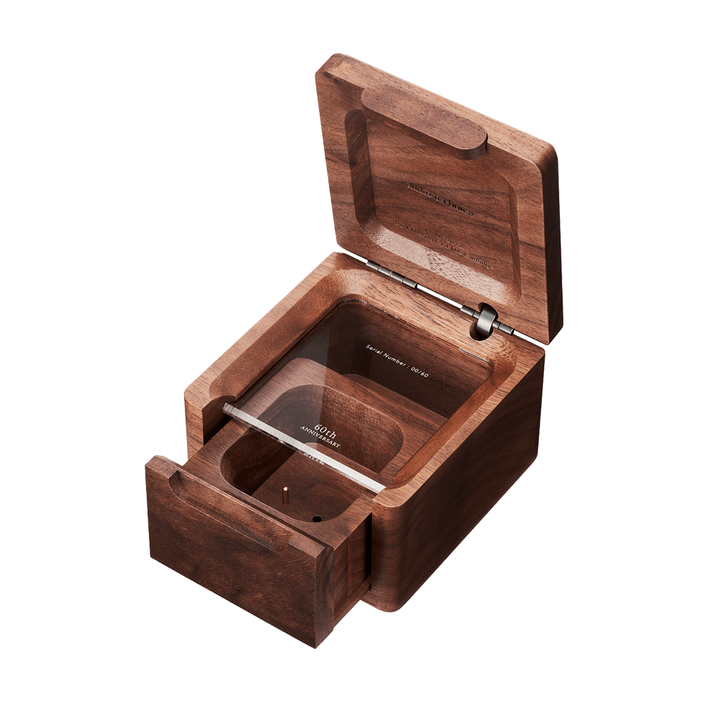 同時隨附60週年專屬胡桃木紀念收藏盒,