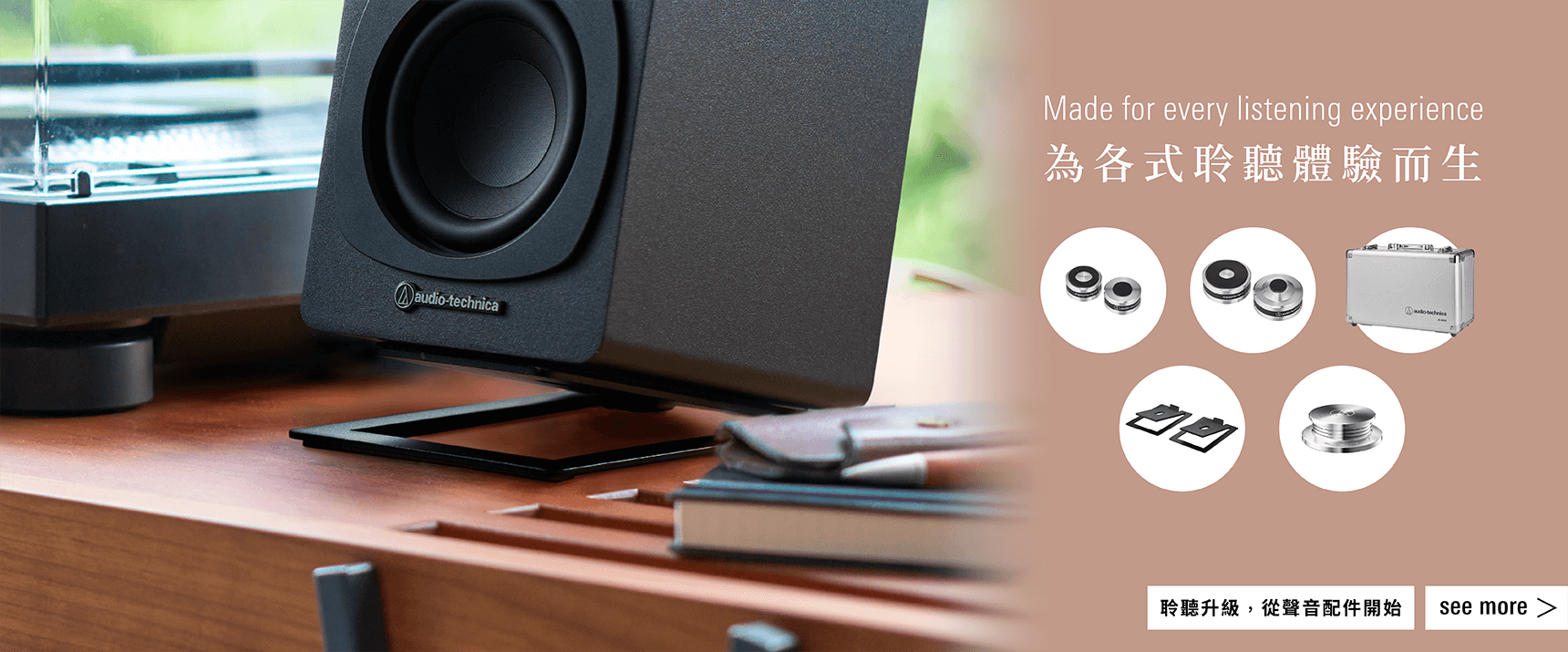 1962年,Audio-Technica於東京的新宿區成立,當時是一間專門製作黑膠唱片唱頭的公司。其後,原創的「VM型」唱頭於全世界取得專利,使日本製的類比產品大舉前進海外市場,受到世界各國的好評,巔峰時期,自動生產線上月產100萬台唱頭,奠定了音響配件大廠的基礎。