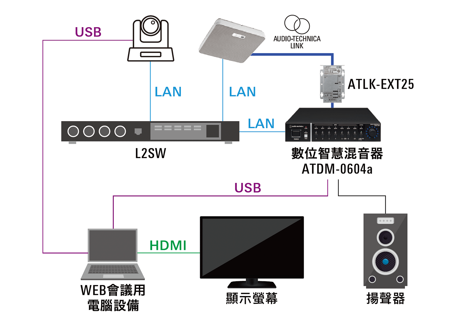 透過波束成形麥克風技術(PAT)檢測出發話者位置數據,定位至發話者。可活用於線上會議、線上課程等場合中。