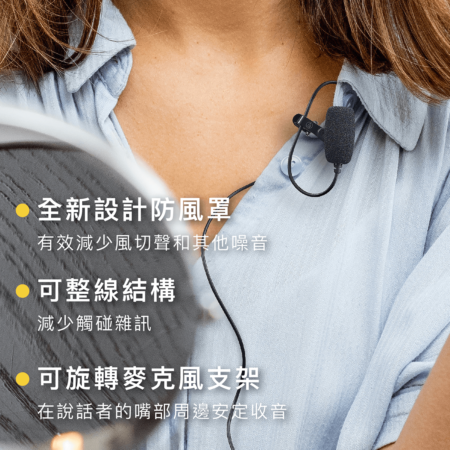 ▌領夾式麥克風,可在說話者的嘴部周邊安定收音