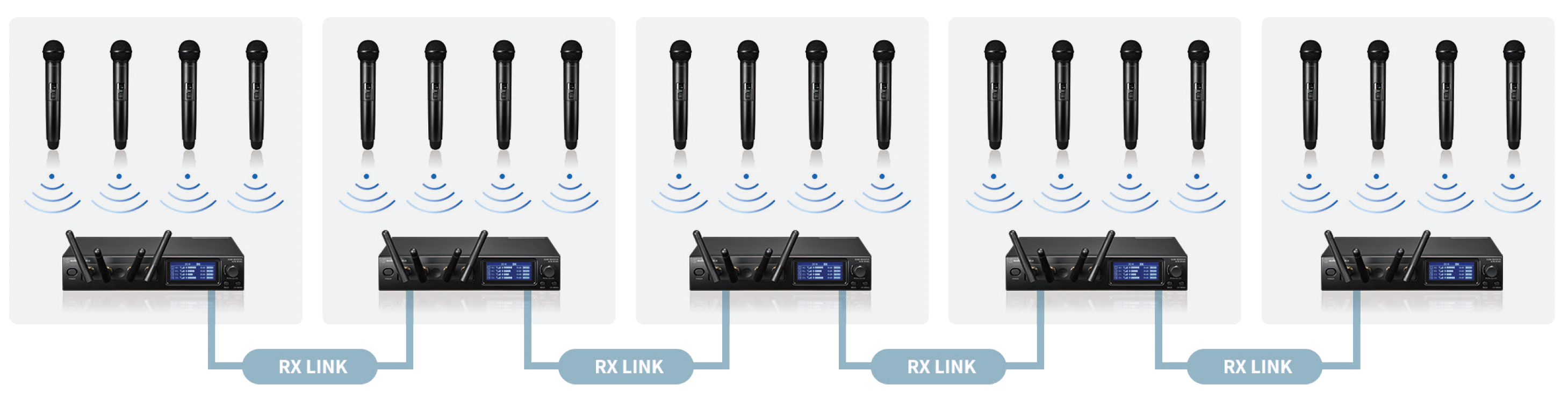 - 最多能夠連接5組接收器。