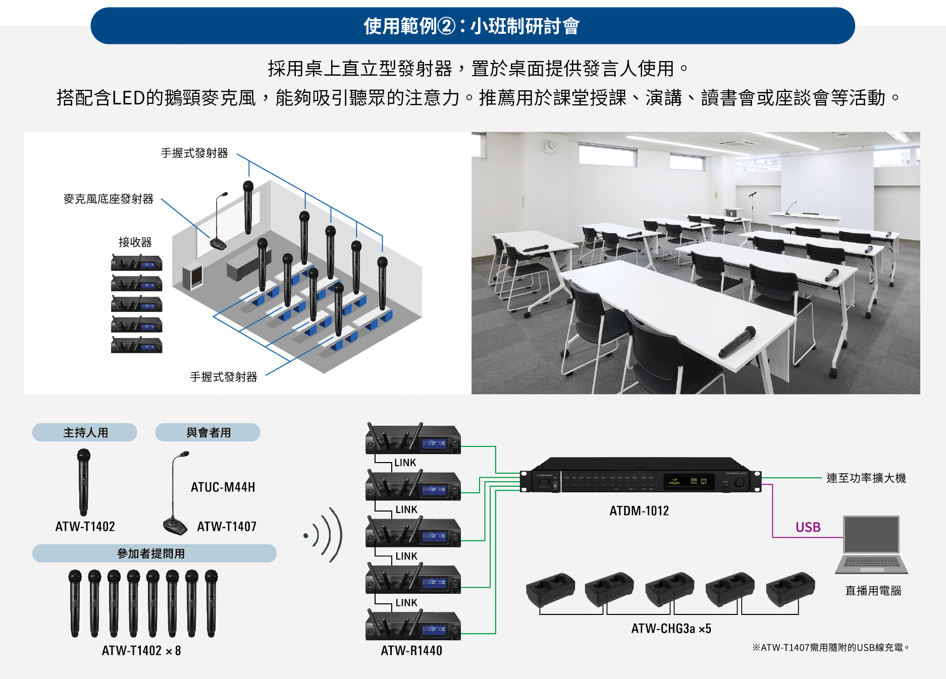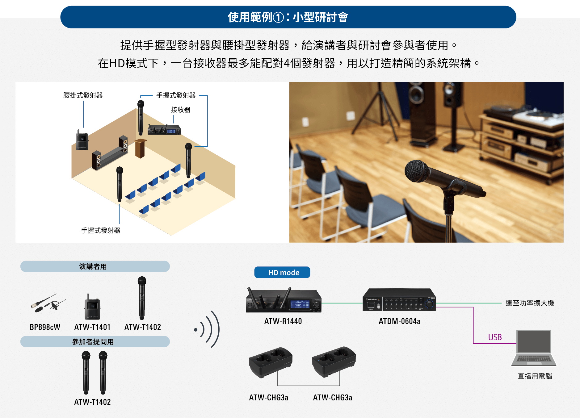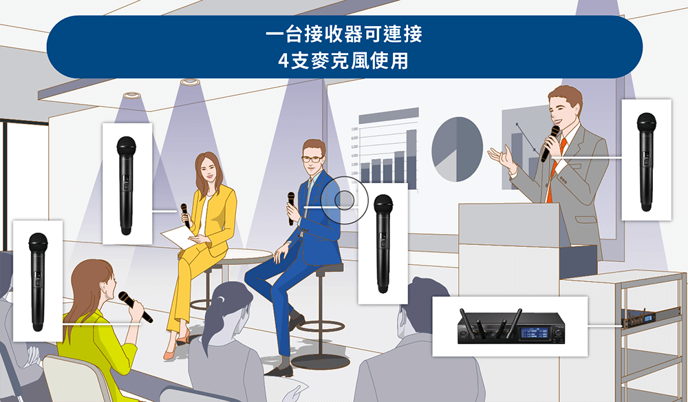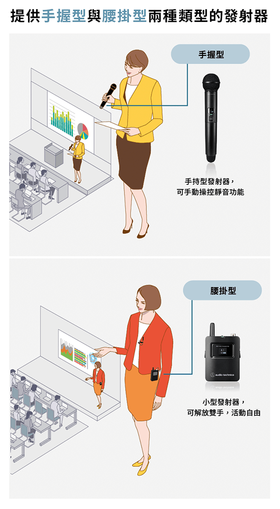 - 適用於單人演講或簡報、發表會等場合。
