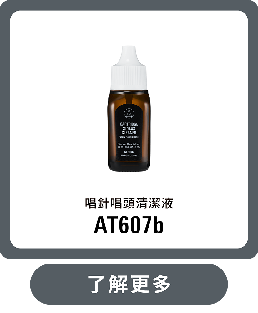 AT-TC300/1.2 PHONO訊號線為黑膠唱盤專用訊號線,以高度相容 VM/MM 唱頭為設計核心,有效抑制靜電容量,並降低接地迴路所產生的雜訊干擾。AT607b 唱針唱頭清潔液則專為清除唱頭針尖上的灰塵與汙垢而設計,有助於保持唱頭唱針潔淨狀態,穩定呈現純淨、自然的黑膠音色。