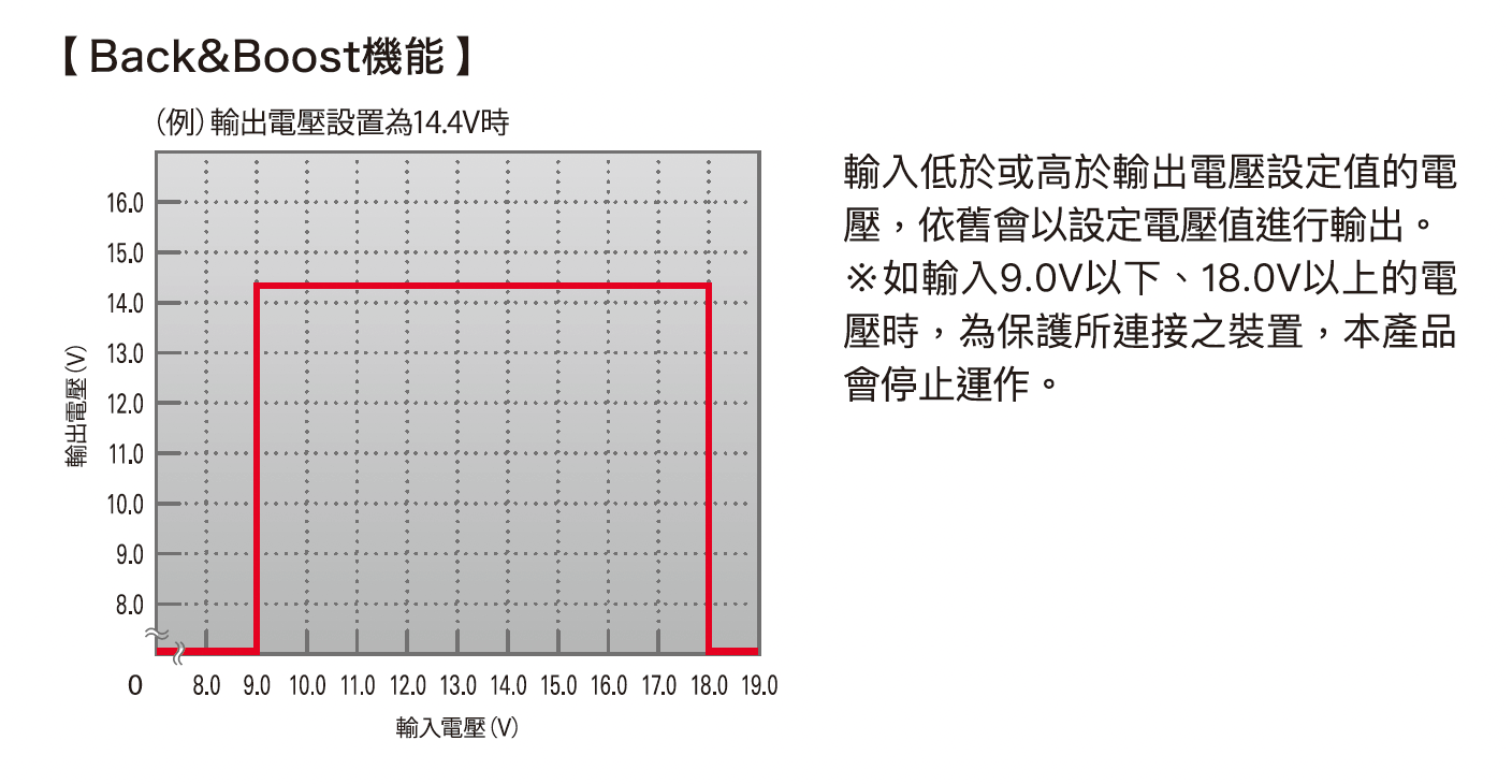 *即使輸入小於或等於輸出電壓設定的電壓,也以設定電壓輸出的功能。