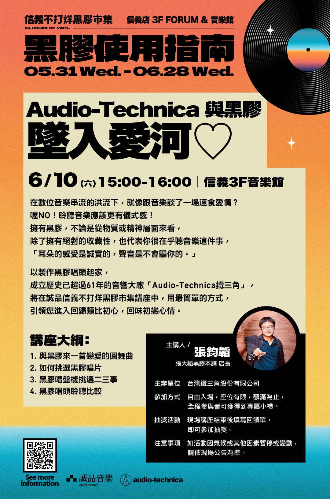 將在2023年6月10日的誠品信義不打烊黑膠市集講座中,