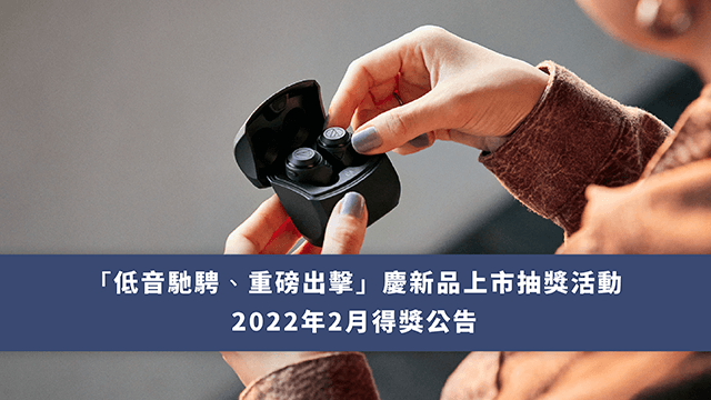 下面公布「低音馳騁、重磅出擊」慶新品上市抽獎活動,2022年2月份得獎名單。