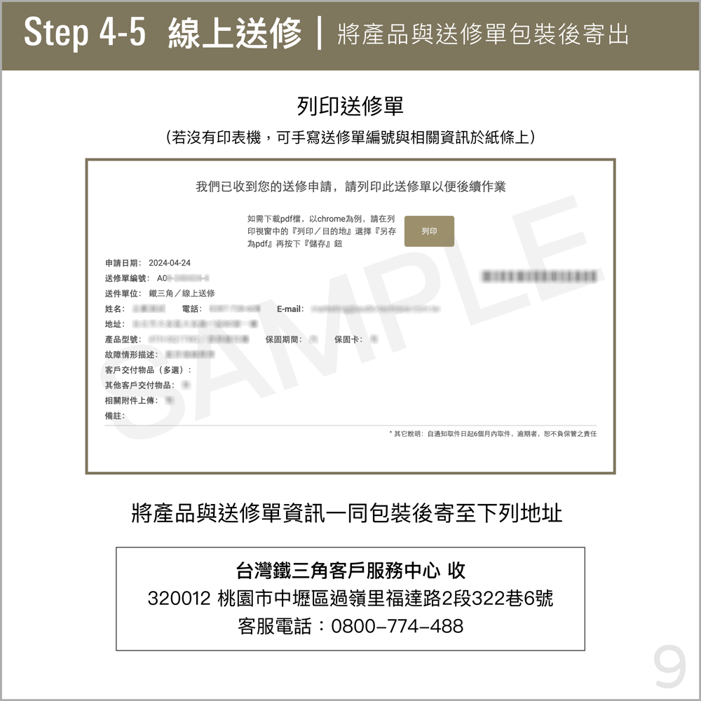 ※如無法列印送修單,請在寄送包裹內提供您所取得的「送修單編號」。