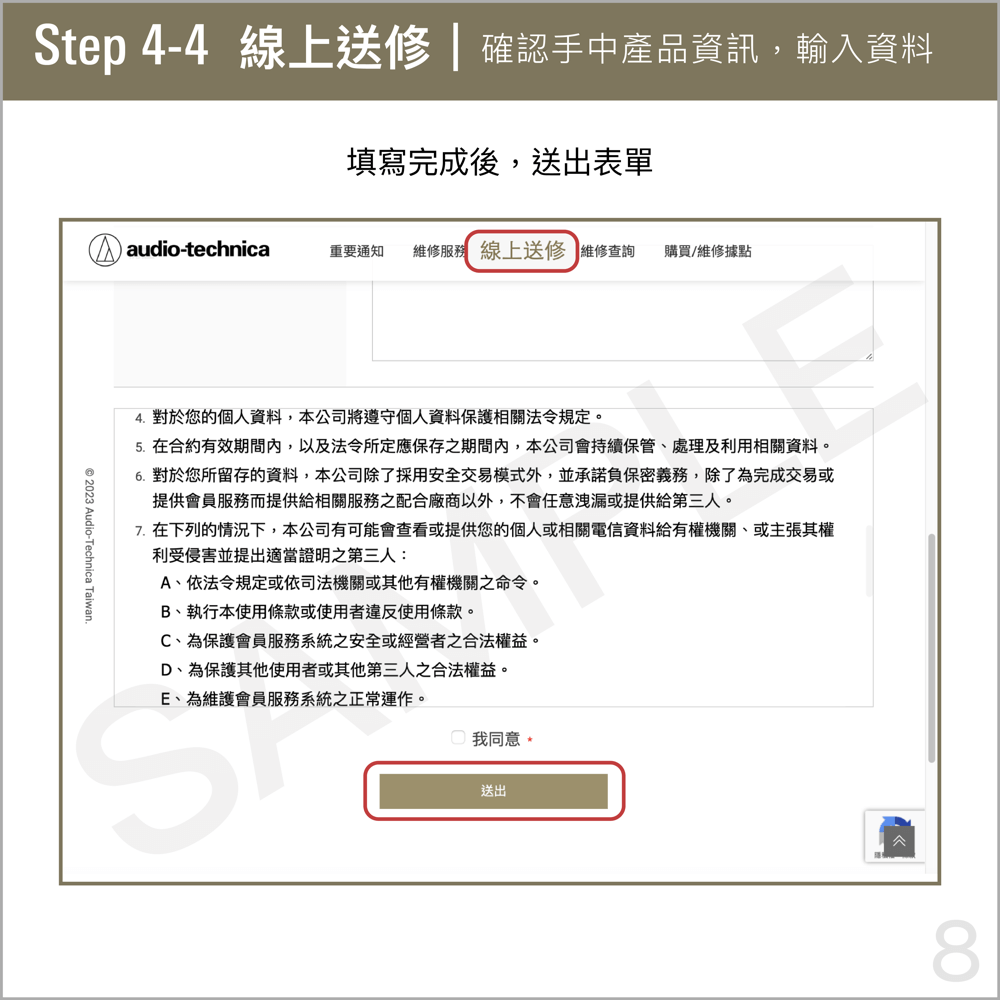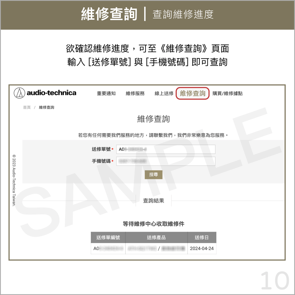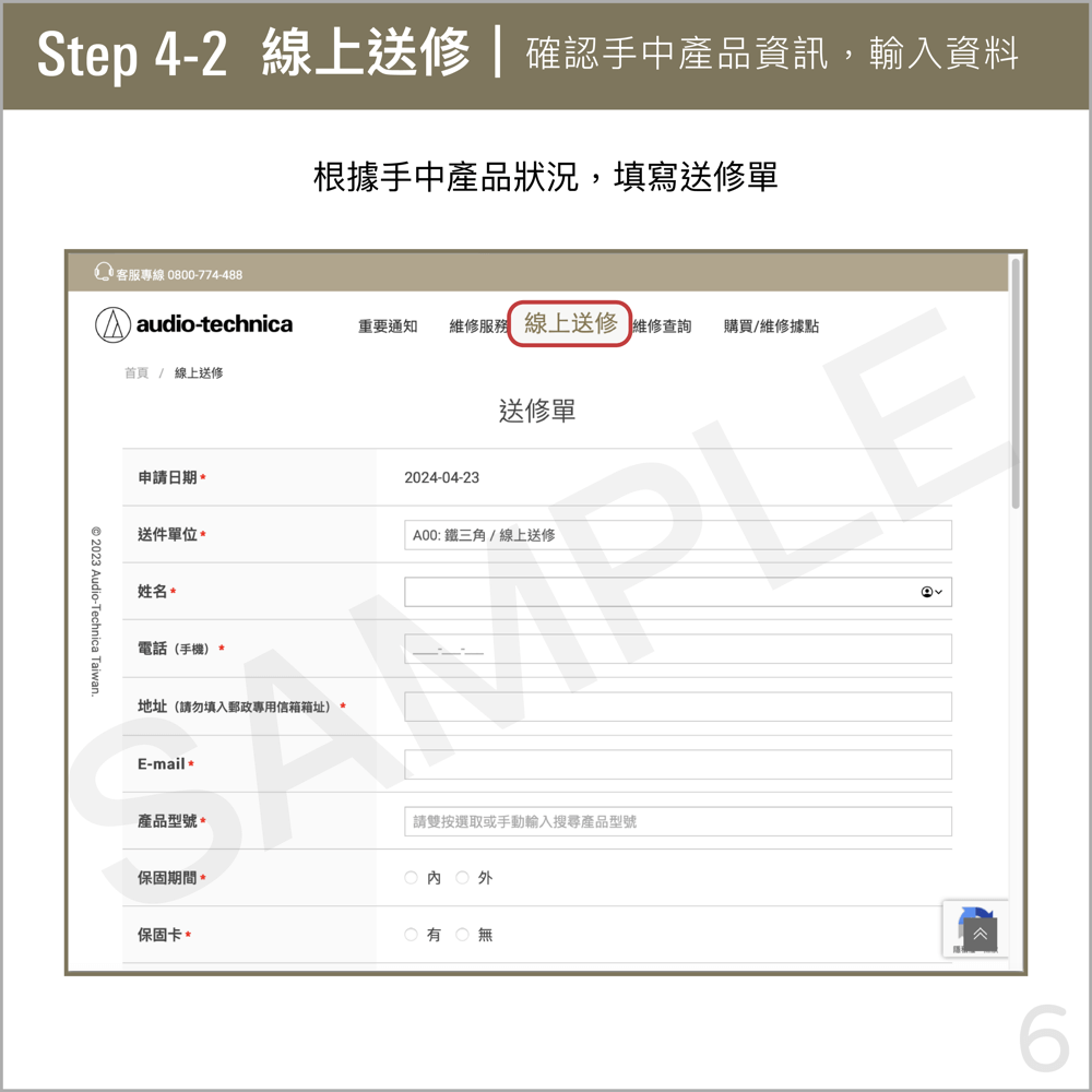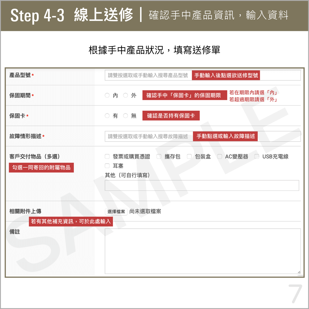 ※如無法列印送修單,請在寄送包裹內提供您所取得的「送修單編號」。