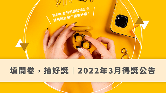 下面公布「填問卷,抽好獎|抽獎活動」,2022年3月份得獎名單。
