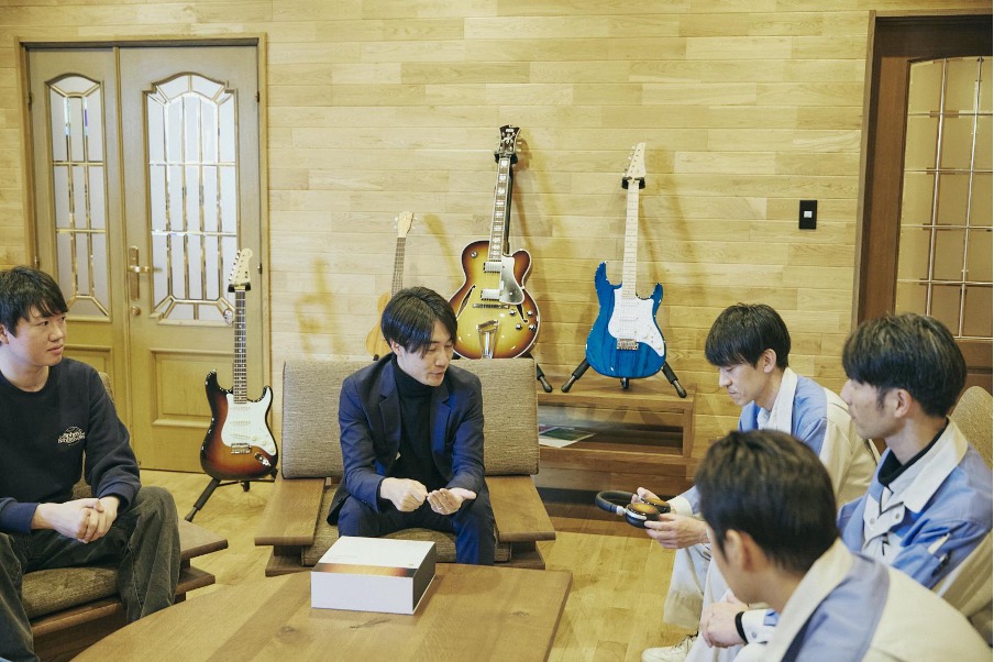 在對談中,有三位來自 FUJIGEN 富士弦的工程師參與:來自銷售部門的中村圭一、來自技術部門的輿貴史,以及負責漆器塗裝的宮澤樹聖。