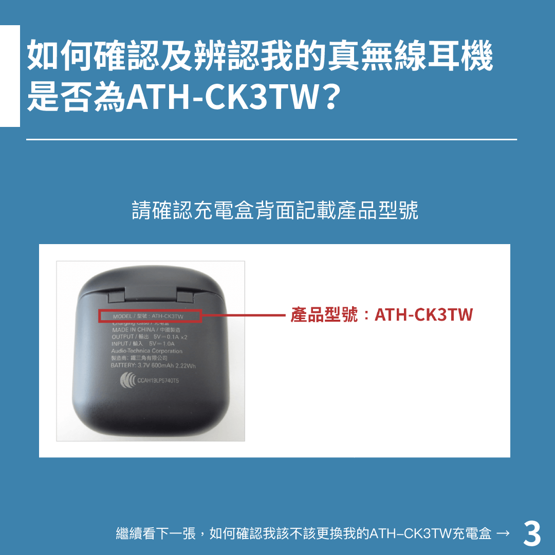 真無線耳機「ATH-CK3TW」充電盒回收更換事宜暨道歉啟事