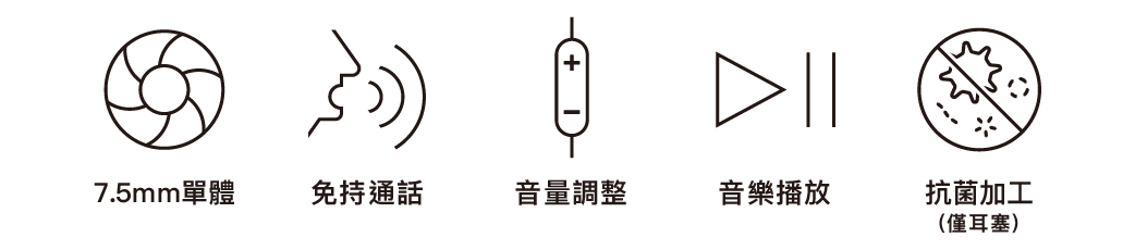 隨附XS、S、M、L 四個尺寸的抗菌加工矽膠耳塞,