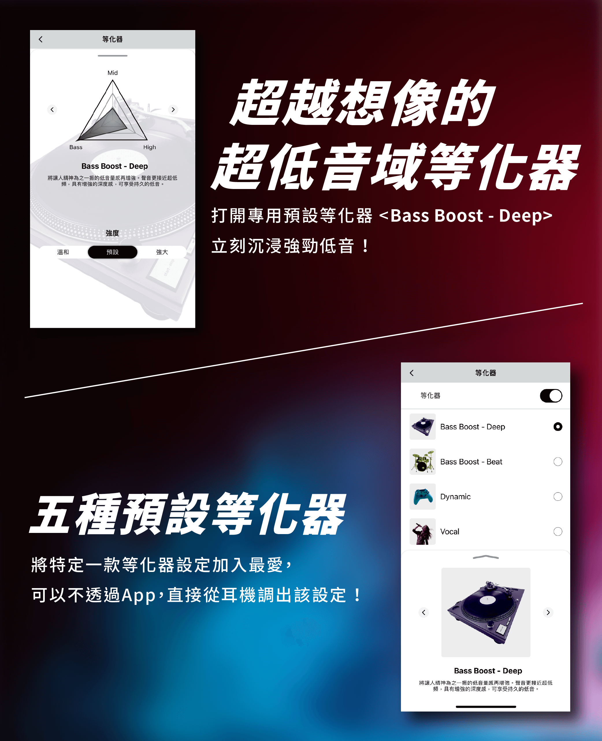 ▌包含「Bass Boost - Deep」,共五種預設等化器選擇