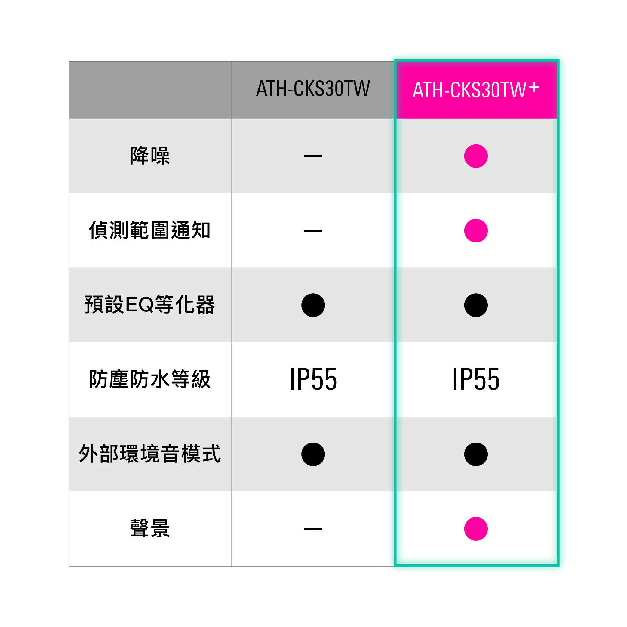 現代⼈每天總是忙於學業、⼯作、社群媒體或各種活動。「ATH-CKS30TW+」是⼀款真無線耳機,適合給那些想在這樣的⽇常⽣活中享受更多時光的⼈。作為鐵三⾓邁入第 15 個年頭重低⾳「SOLID BASS」系列陣容的⼀員,希望能以「讓⾝⼼為之⼀振的⾳⾊」的全新概念,打造⾝臨其境的沉浸聆聽體驗。