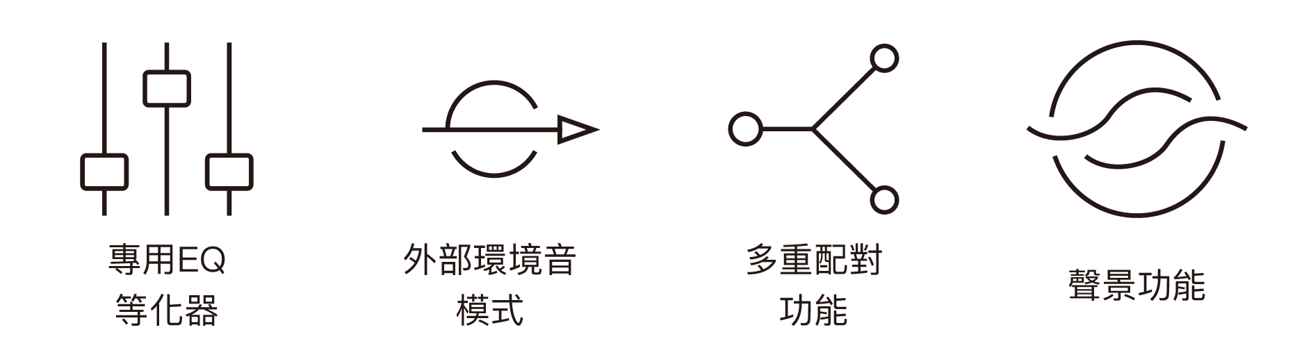可將經常使⽤的歌曲播放、⾳量調整或聲景功能等指定分配給左右任⼀側耳機的觸控⾯板,配合不同⼈的喜好與需求進⾏無縫切換。