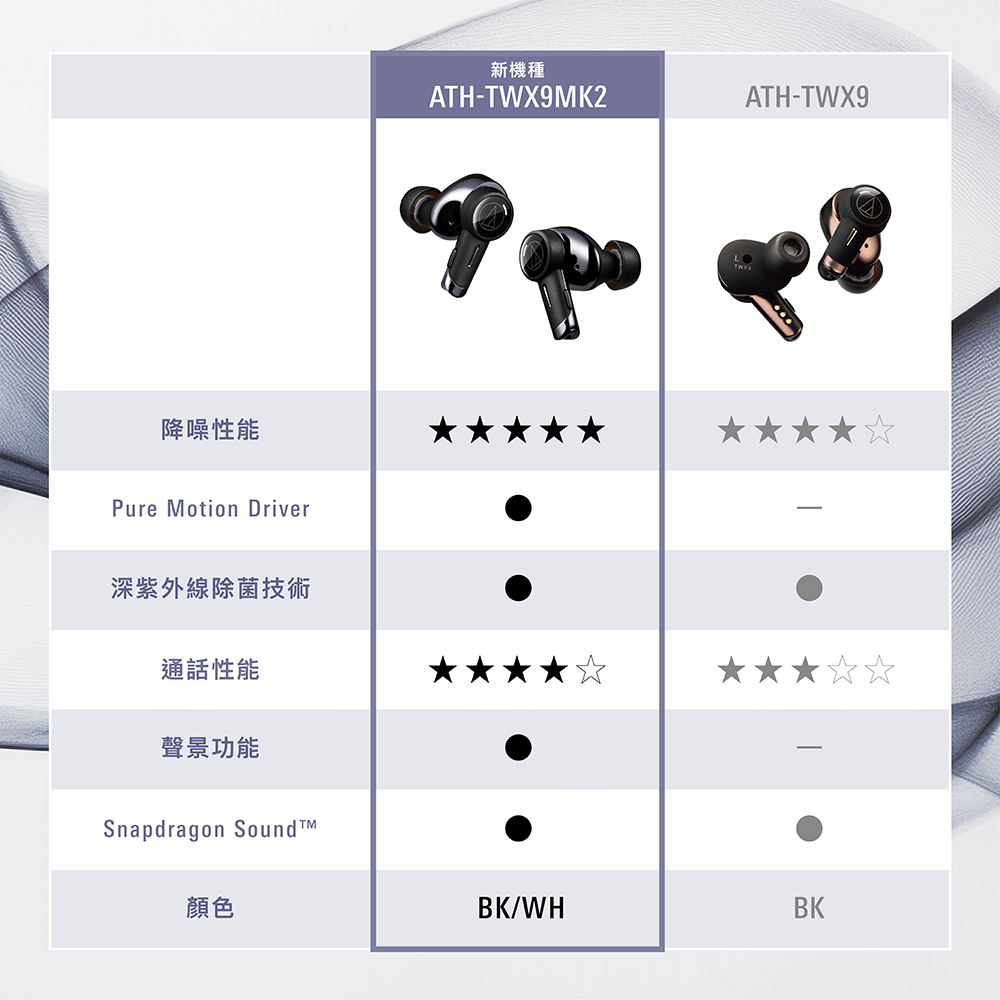 ATH-TWX9 與 ATH-TWX9MK2 比較