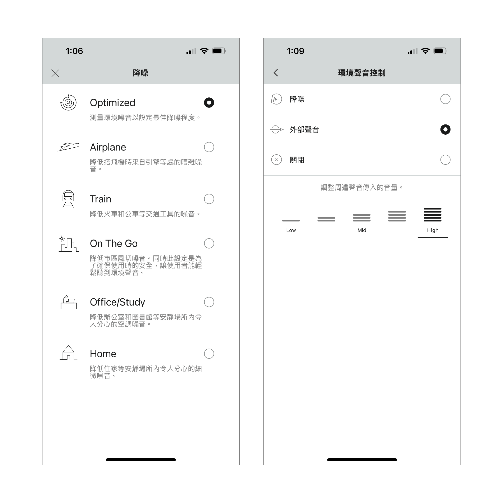 *可透過專屬 App《Connect》選擇「音量降低」或「完全靜音」兩種快速外部聲音功能的音樂處理方式。