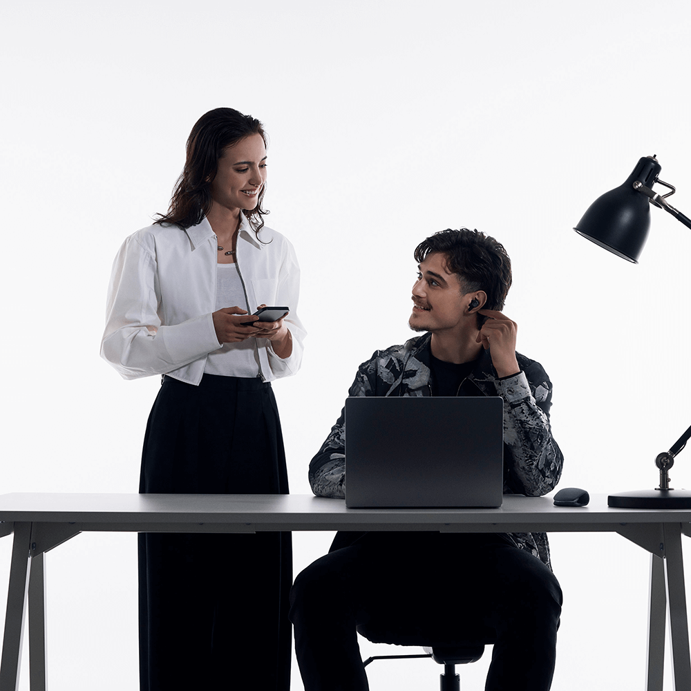佩戴耳機時總容易聽不清自己說話的聲音。透過Side Tone側音功能,使用者在通話時可透過耳機聽見自身聲音,減輕閉塞感,營造如未佩戴耳機般自然的通話體驗。同時,也能避免因聽不見自己的聲音而導致不自覺在對話時提高音量。