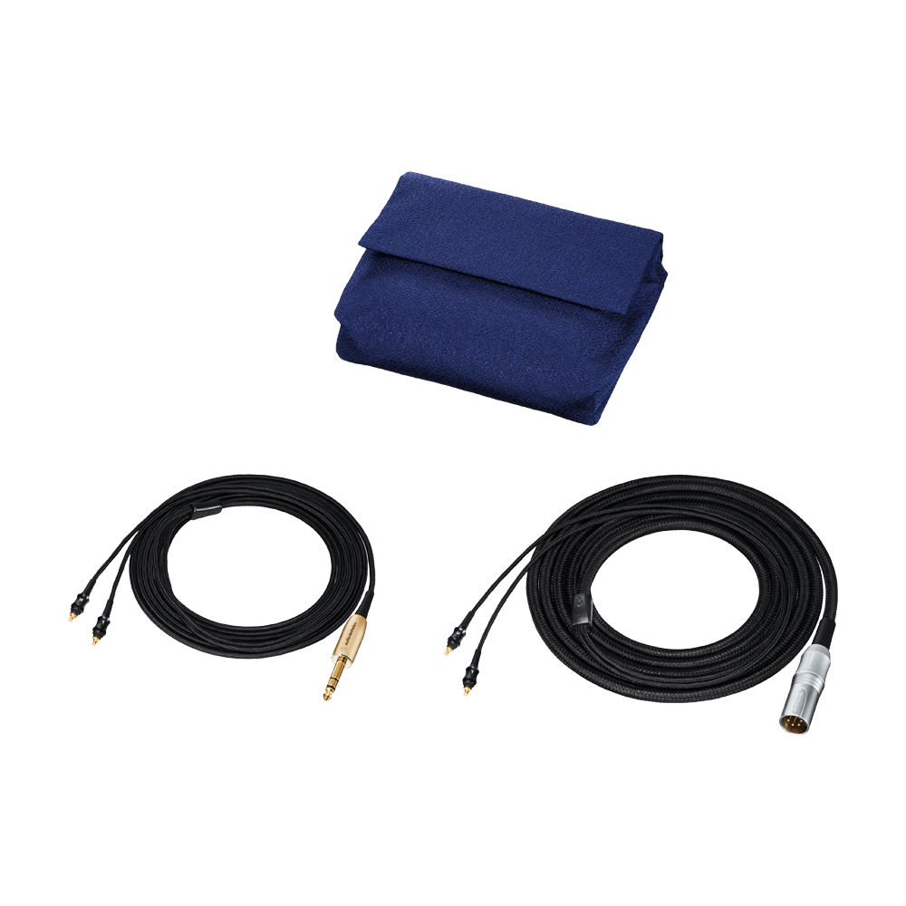 3.0m導線(Ø6.3mm鍍金標準插頭)、3.0m平衡導線(4 pin XLR-M端子)、收納箱、線材收納袋