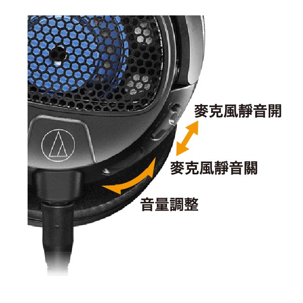 左側機殼設有音量調整旋鈕與麥克風靜音開關,在遊戲內進行交流時可不受阻礙地進行相關操作。