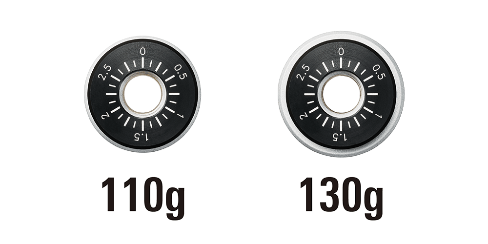 提供110g與130g兩種類型的重錘,可依據不同重量的唱頭選擇進行搭配,靈活對應多樣化需求。